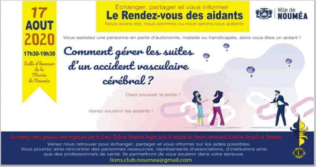 Le CCAS de la Ville de Nouméa, en partenariat avec le Lions Club Nouméa Doyen a le plaisir de vous convier au quatrième Rendez-vous des Aidants Lundi 17 août 2020…